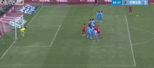 第70分钟,纳萨里奥开出任意球,克莱伯将球蹭进自家球门,河南2-1云南